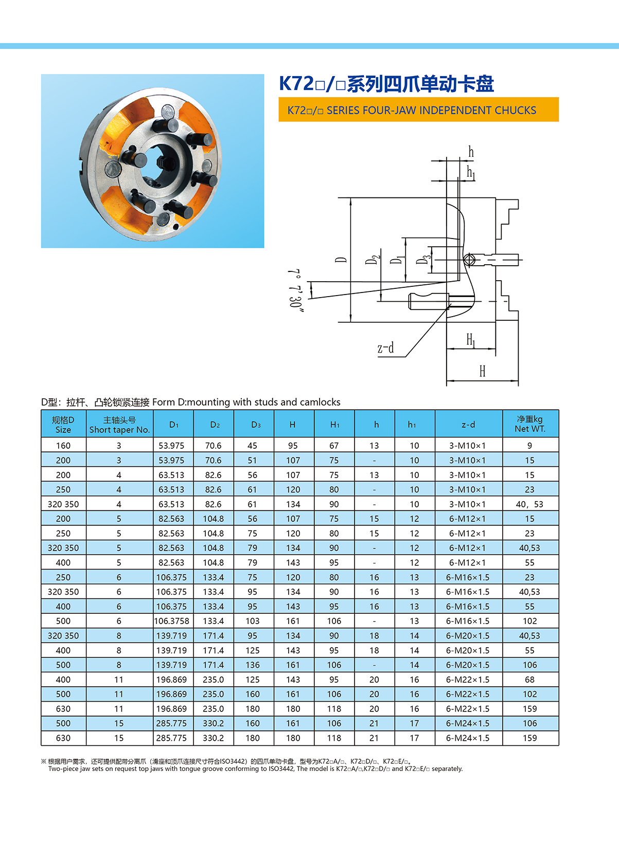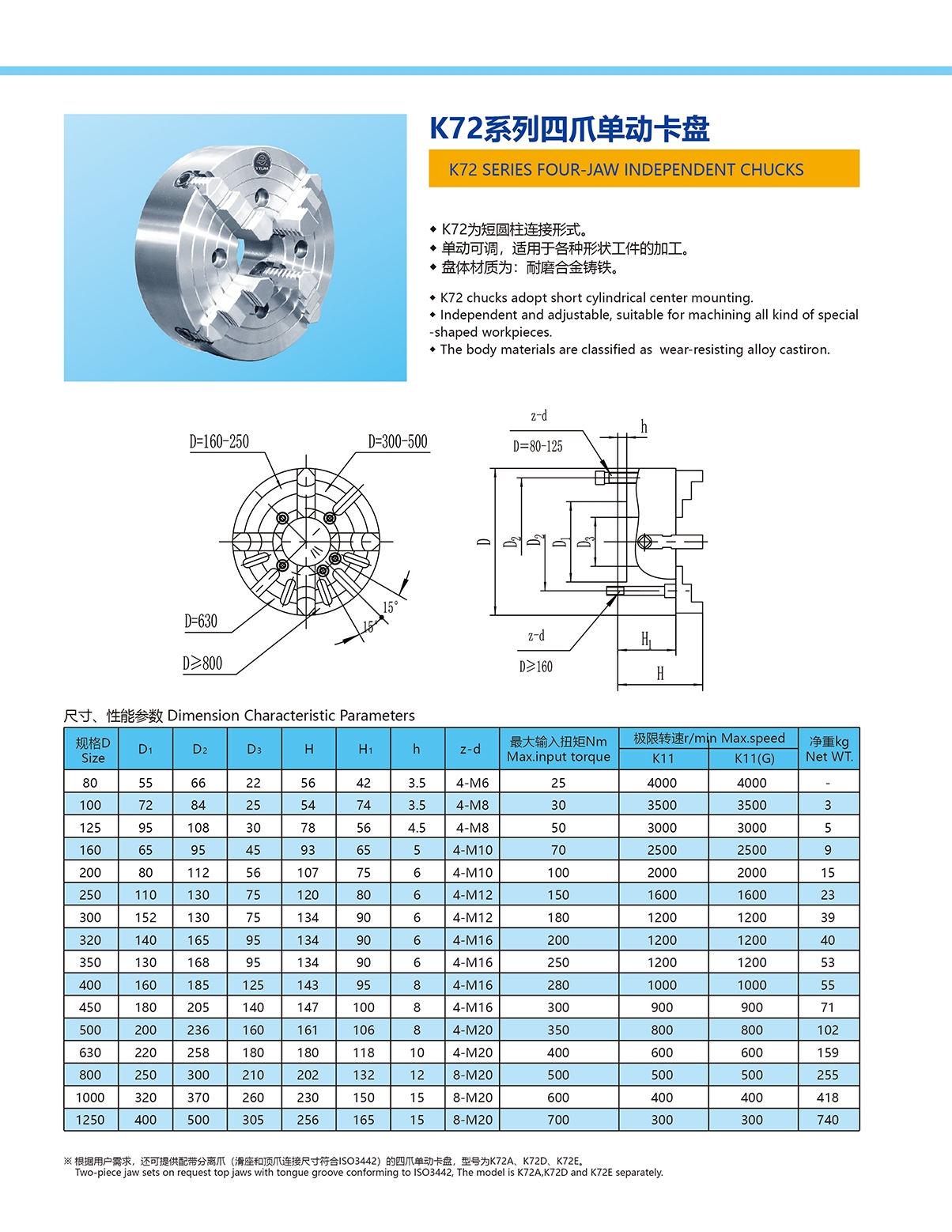 K72系列四爪單動卡盤